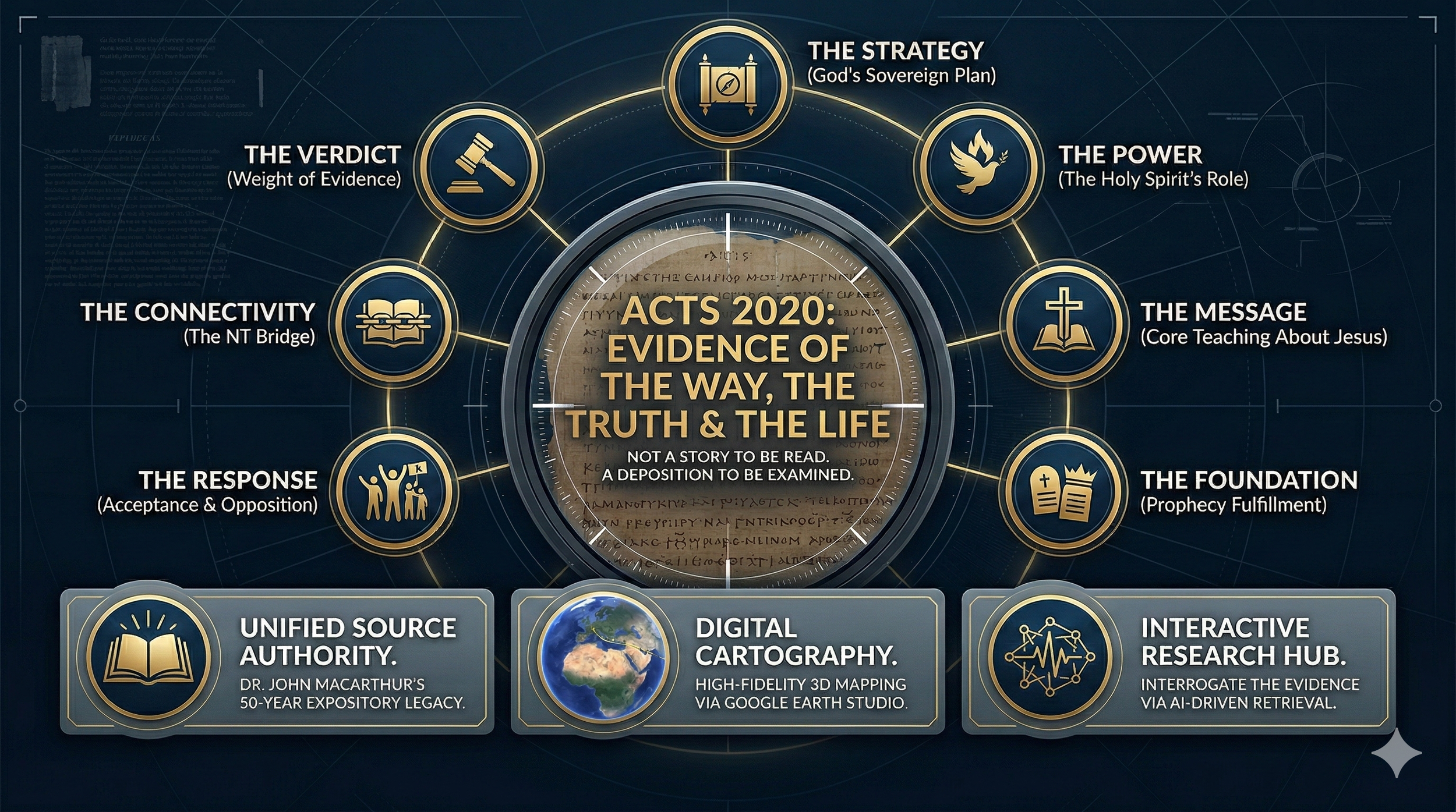 This platform is more than a website; it is an investigative portal—a journey into the heart of 1st-century Christianity. The Acts 2020 Project allows you to examine the birth and expansion of the early Church through decades of exhaustive research from Dr. John MacArthur combined with modern analysis technology.