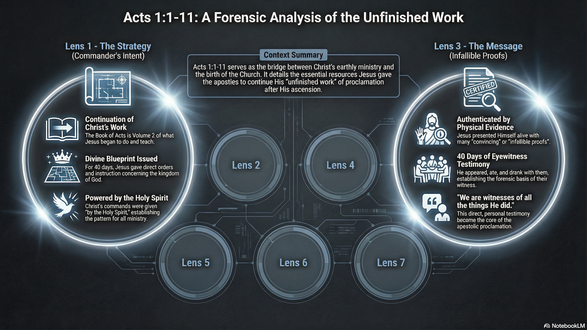 Using the Sumbibazo method, we connect the 40-day briefing of the Risen Christ to the Old Testament foundations. This period was not merely a transition; it was a forensic validation of the Infallible Proofs—physical evidence of the Resurrection that transformed the disciples into authorized agents.