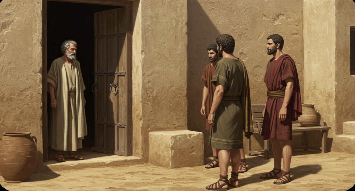A. Confirmation of the Mission: Peter goes downstairs and speaks with the men, who explain Cornelius's angelic vision and his divine instruction to send for Peter: "He was divinely directed by a holy angel to send for you to come to his house and hear a message from you." (Acts 10:22). This mutual corroboration of visions (Cornelius's and Peter's) leaves no doubt about the divine authenticity of the mission, strengthening Peter's resolve.
