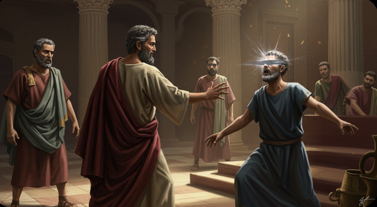Storytelling inspires: Imagine the tension—Elymas scheming, Paul's eyes blazing with Spirit-fire, blindness falling like a curtain. It's relatable: We face 'Elymas' figures—doubts, distractions, or people twisting truth. Like Paul, rely on the Spirit for discernment and boldness.
