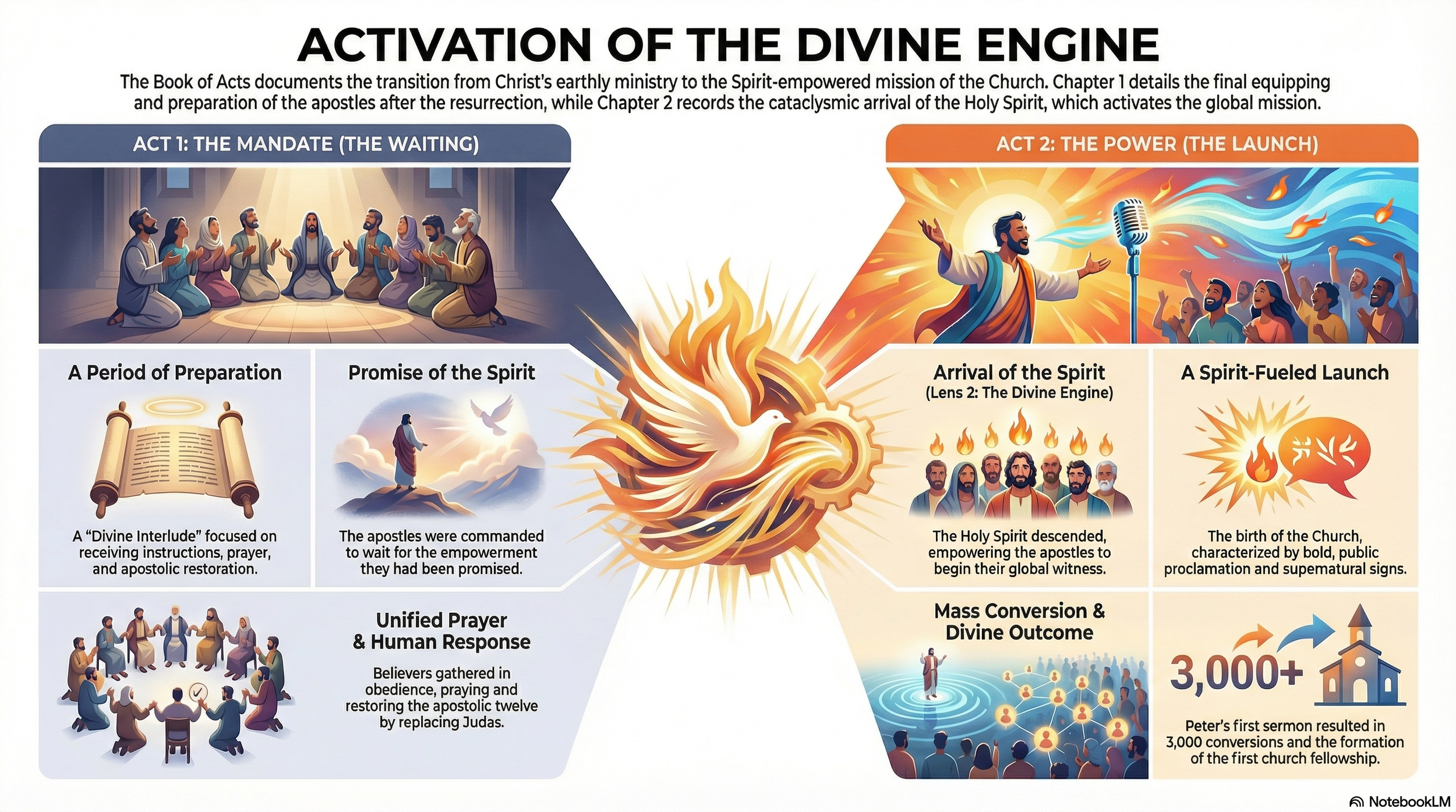 Description: Analyzing the arrival of the Holy Spirit as the "Divine Engine."