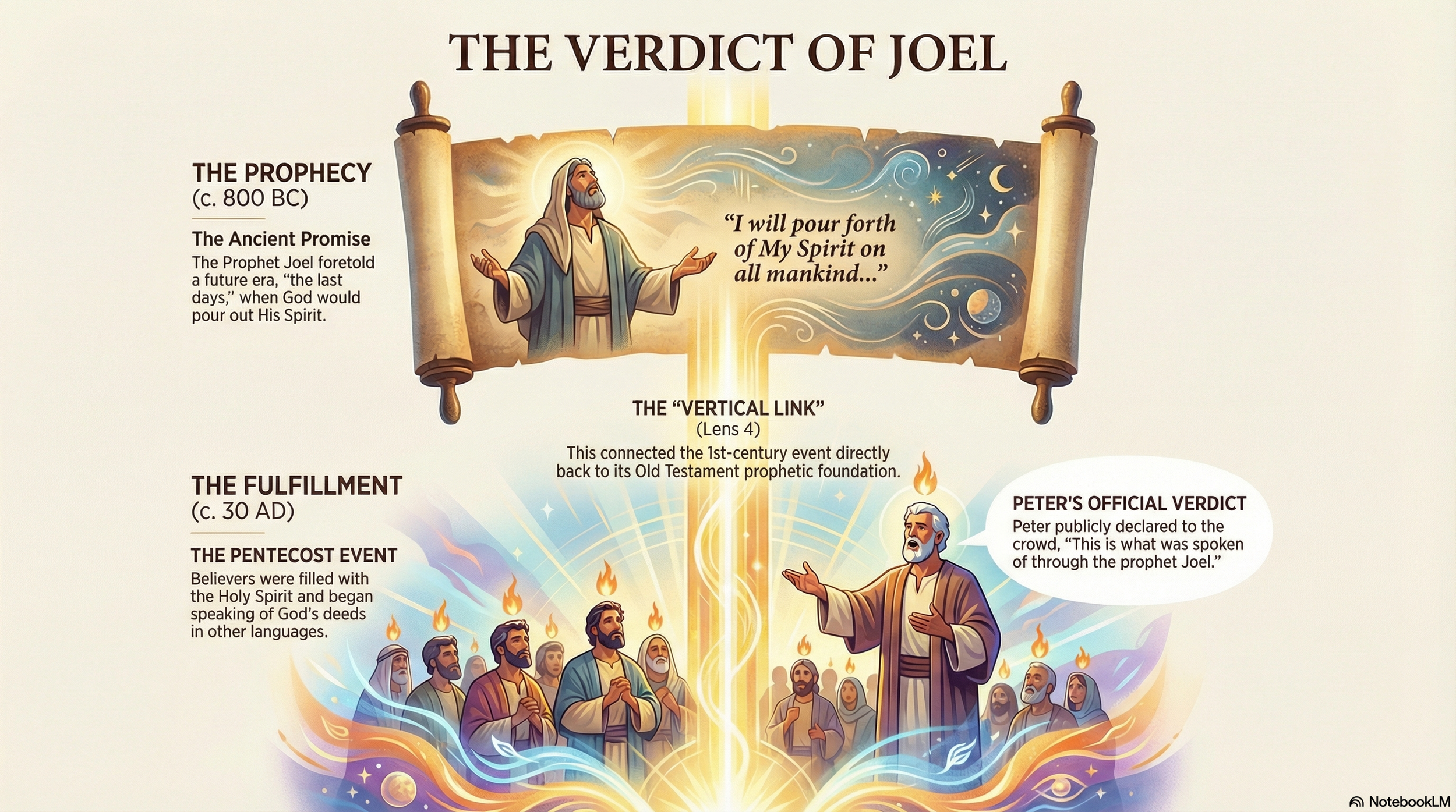 This portal audits the opening move of Peter’s proclamation, where he shifts the crowd's focus from supernatural phenomena to prophetic fulfillment. Using the Sumbibazo method, Peter identifies that the outpouring of the Spirit is not "drunkenness" but the vertical fulfillment of the Prophet Joel’s legal contract with Israel.