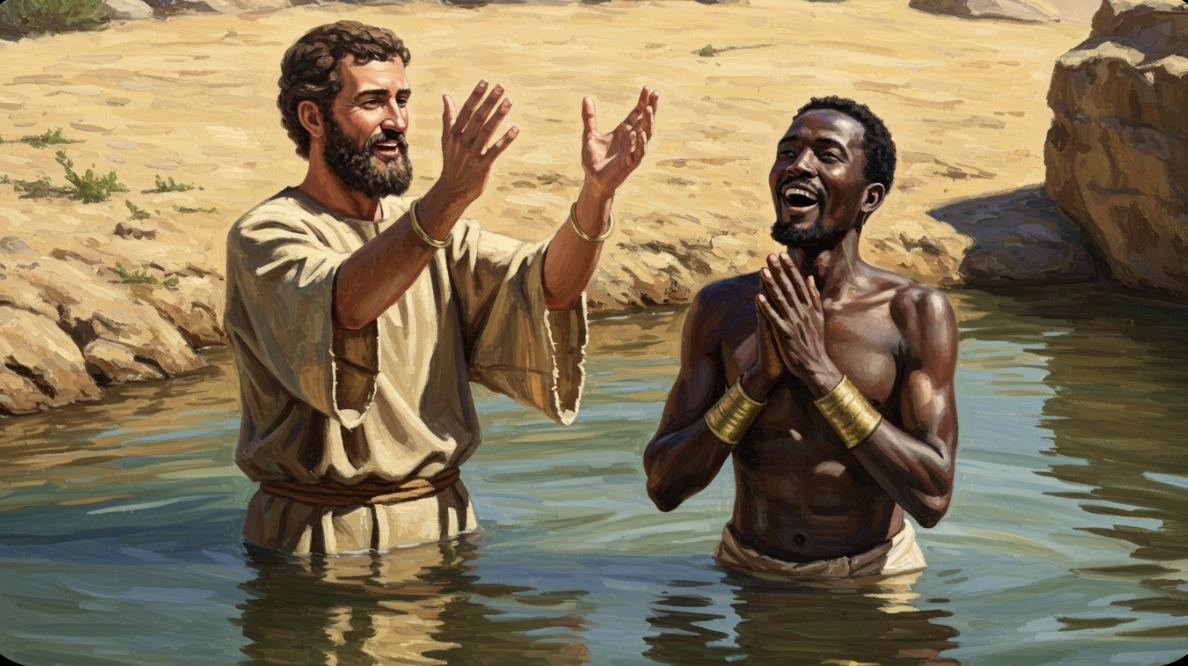 This narrative embodies The Great Commission's cross-cultural thrust. Ethiopia, distant and exotic, represents Gentile inclusion, fulfilling Acts 1:8's "uttermost parts." No ethnic barriers; the gospel's for all. Subtly, it touches Christianity Accepted and Opposed—accepted eagerly here, with no opposition noted, contrasting Jerusalem's hostility. Yet the eunuch's prior exclusion hints at old barriers crumbling, as prophesied in Isaiah 56:3-8: God welcomes foreigners and eunuchs.